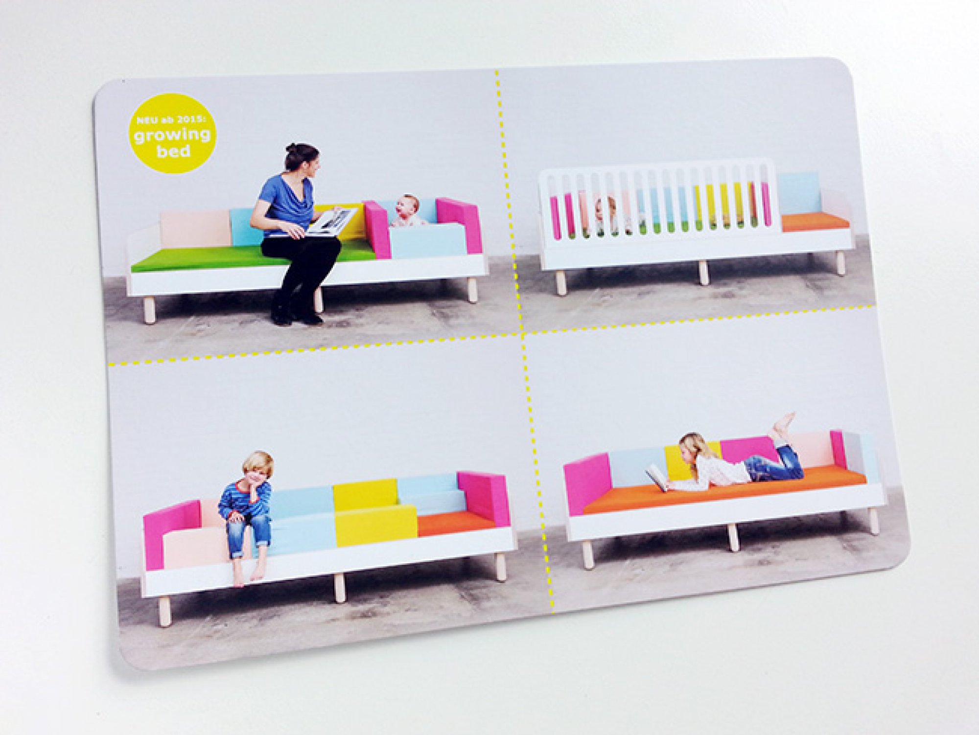 30.04.2015Nach einem sehr bunten Shooting letztes Jahr trudelte der neue Flyer des “Growing Bed” vom Designer Olaf Schroeder in mein Büro. Da hat doch bestimmt mein Nachbar netmedia die Finger im Druck gehabt. Das mitwachsende Bett (nein, mit Wasser giessen hilft da leider nicht) passt sich den Bedürfnissen des Kindes von 0 bis 18 Jahren an. Danke für den schönen Flyer!