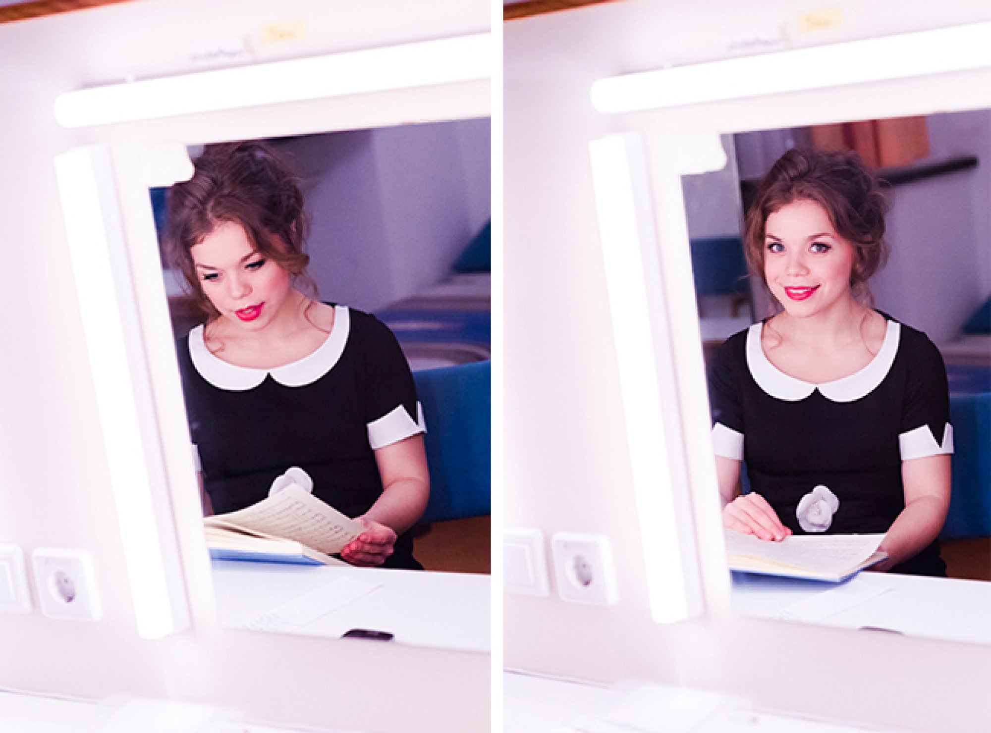 13.11.2015Während ich die Aufnahmen der Generalprobe für Le Nozze di Figaro machte, wollte ich gerne wissen, was die Solistinnen denn so während ihrer 20 minütigen Pause machen. Meditieren, etwas essen, trinken, entspannen, singen, Yoga oder eine neue Maske bekommen?